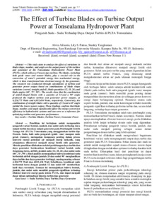 Pengaruh Sudu - Sudu Terhadap Daya Output Turbin di PLTA Tonsealama