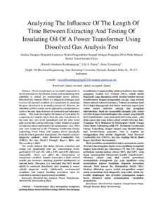 Analisa Dampak Pengaruh Lamanya Waktu Pengambilan Sampel Dengan Pengujian DGA Pada Minyak Isolasi Transformator Daya.